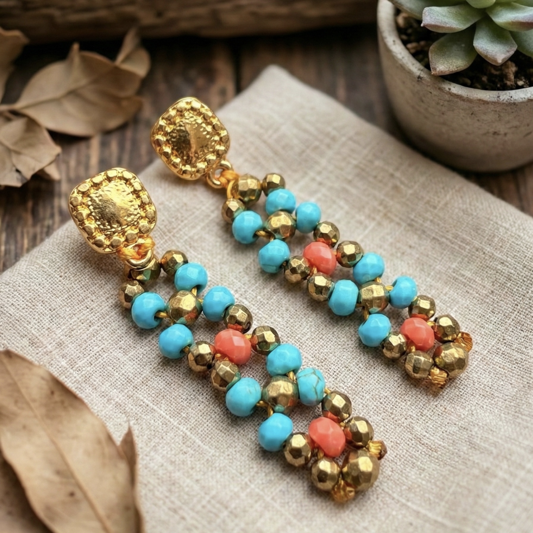 Brincos turquesa com coral